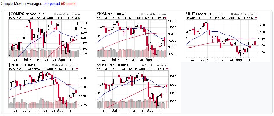 Last week, all major averages closed above their 20-day moving averages, with the exception of the Dow Jones Industrial’s (DJIA) which closed 10 points below that level.