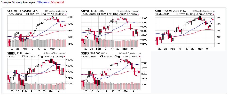 With the exception of the NASDAQ and Russell 2000, the major stock market averages fell below their 50-day moving averages.