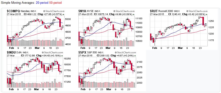 All the major stock market averages fell below their 20-day moving averages