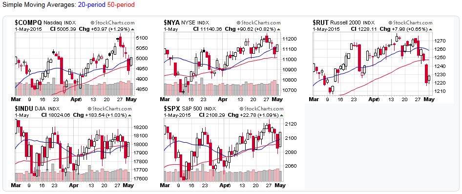 Most of the major averages fell below their 50-day moving averages last week. All but the Russell 2000 were able to recover.