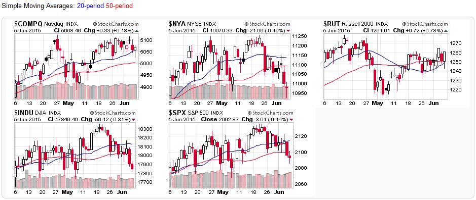 3 of 5 major stock market averages remained below their 20-day moving averages. Only the NASDAQ and Russell 2000 remained above this level.