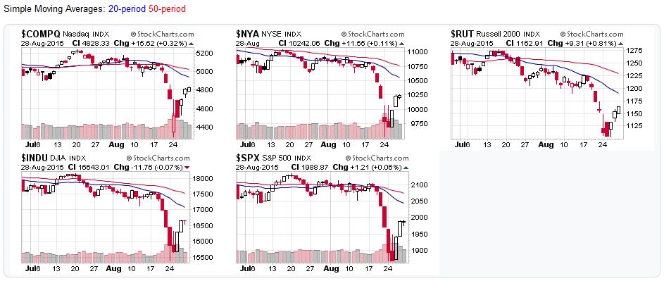 All major stock market averages remained below their 20-day moving averages.