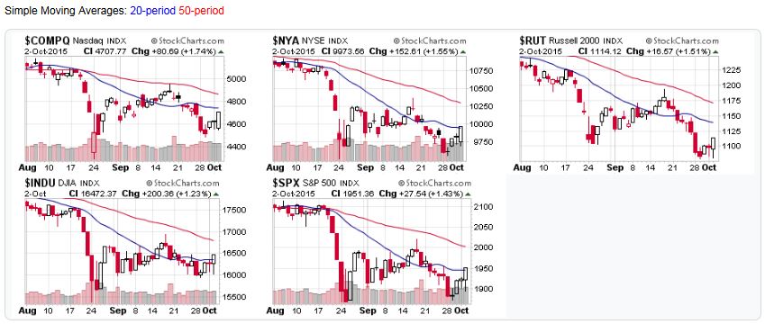 3 of the 5 major stock market averages rose above their 20-day moving averages.