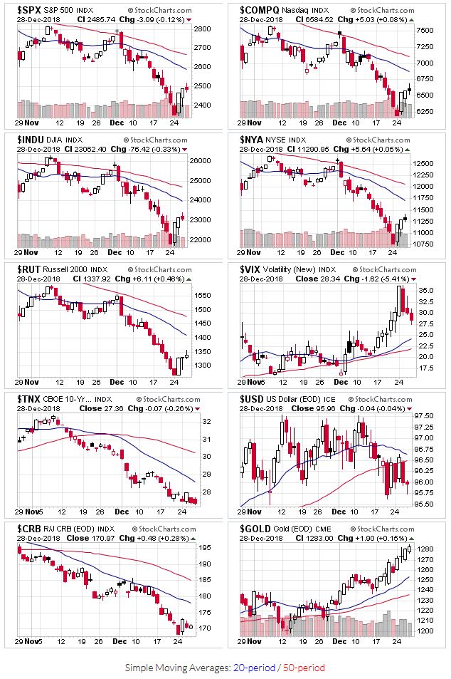 Better late than never? We had to wait until after Christmas, but Santa Claus delivered a rally. Not as much as we would have liked, I’m sure, but better than another sell-off. No change in outlook though. Equities have some work to do before giving the all clear to put your money at risk.
